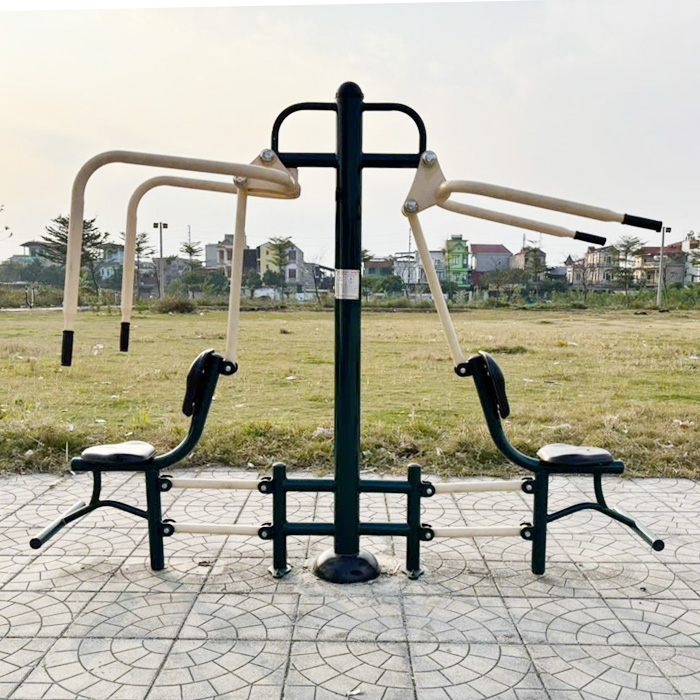 - Máy thể dục ngồi kéo và đẩy vai tay đôi ngoài trời hỗ trợ luyện tập cơ cánh tay, bắp tay, bả vai, khớp vai. Ngoài ra, giúp hỗ trợ tuần hoàn máu, tăng cường độ dẻo dai, sức mạnh cho cơ tay, bả vai mang lại cho người tập vóc dáng khỏe đẹp. Thiết bị còn mang lại hiệu quả cao nhất cho người tập luyện, cũng như dễ dàng và an toàn tập luyện mỗi ngày.