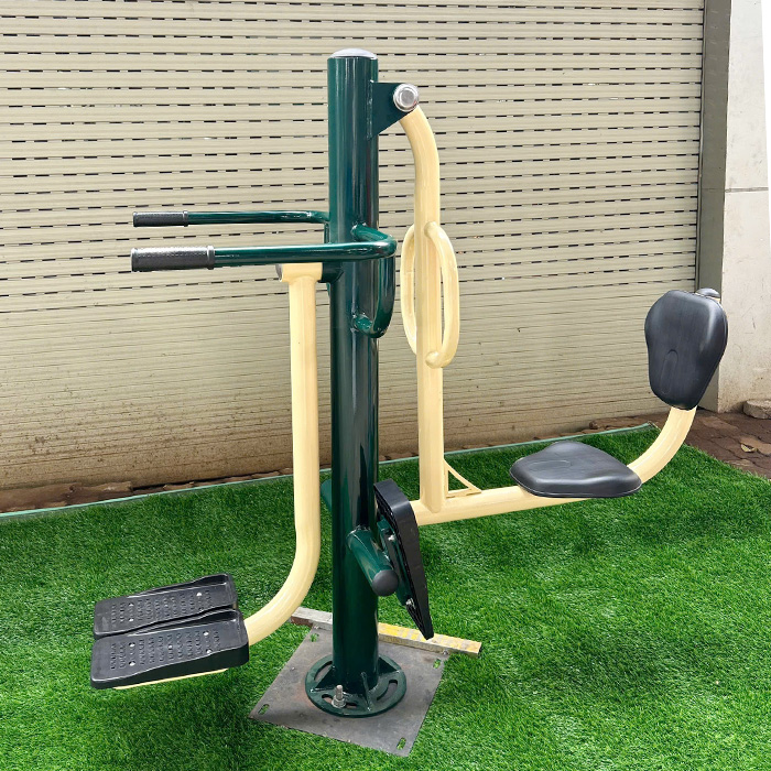 - Thiết bị tập thể dục đa năng ngồi đạp chân và lắc eo ngoài trời hỗ trợ luyện tập lắc eo, và đạp chân giúp người tập luyện phần thân dưới như: Phần cơ lưng, eo, cơ chân, bắp đùi, bắp chân,… hỗ trợ tuần hoàn máu, tim mạch, hơi thở, vóc dáng khỏe đẹp khi tập luyện